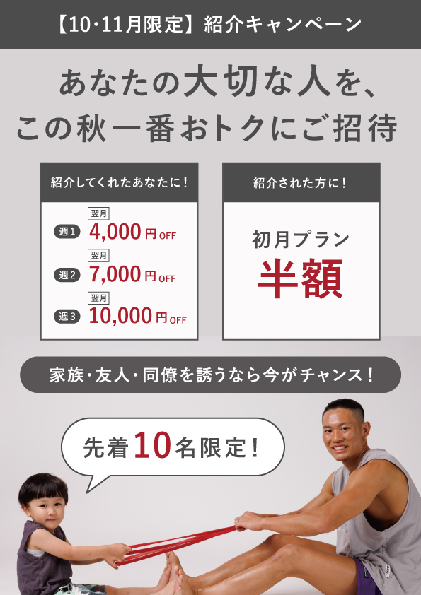 また現在、新規入会を検討している方も、10月、11月の期間中にご紹介者様がいらっしゃれば割引を適用させていただきます。