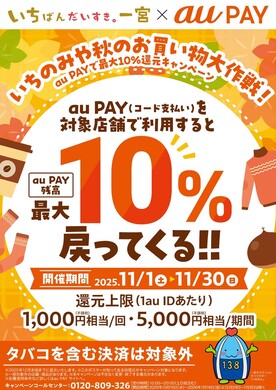 いちのみや秋のお買い物大作戦!【スマホ決済】で最大10%還元キャンペーン