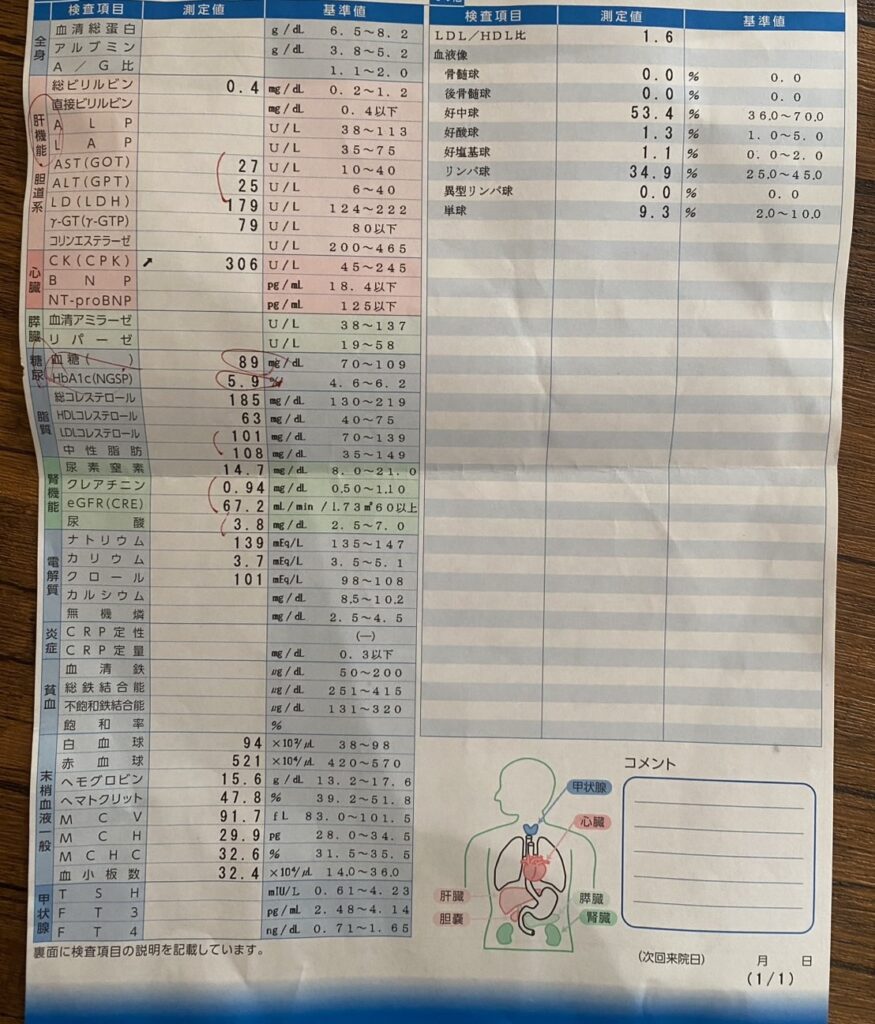 ・トレーニング開始前の血液検査では、約9割が赤字(正常範囲外)の数値