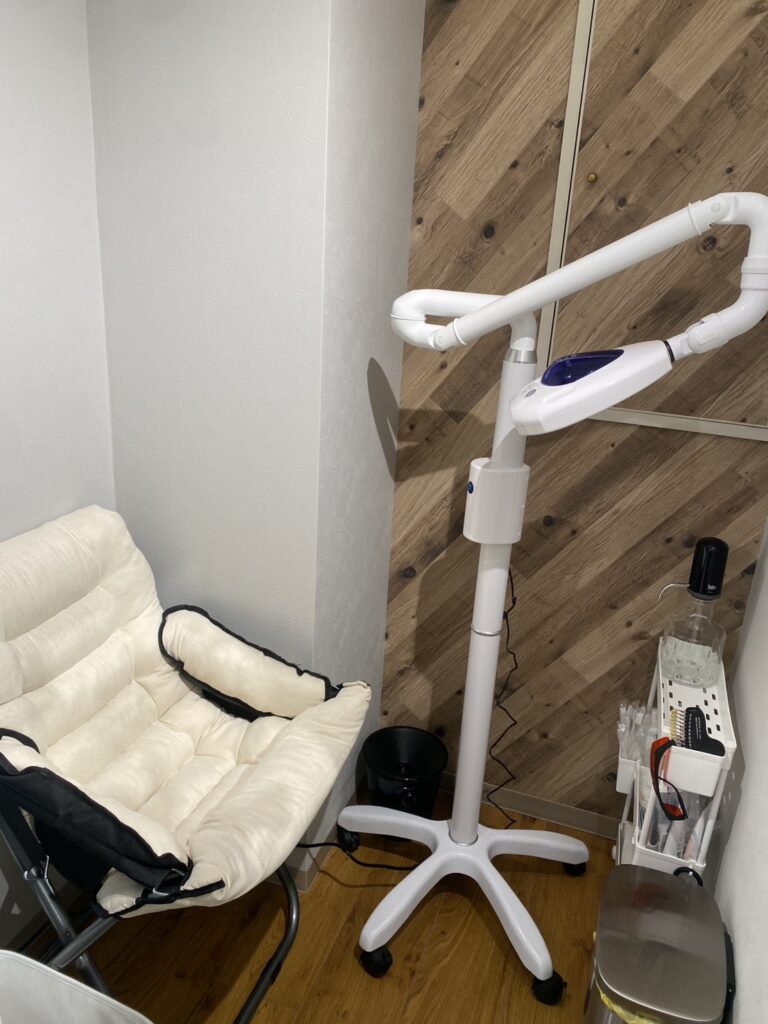 個室で専用の溶液とライトを使用し、ご自身でケアを行っていただくため、人目を気にせずリラックスした状態で施術できるのもポイントです。