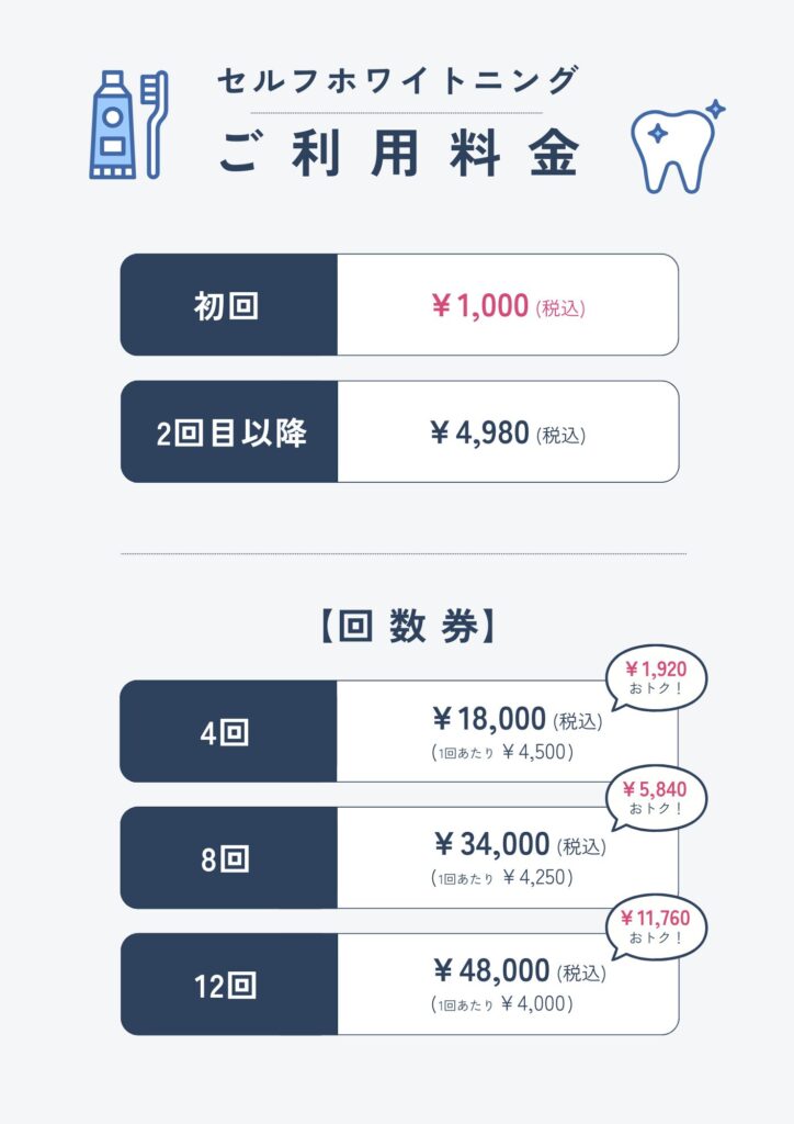 そしてなんと、初回は1,000円で体験いただけますので、セルフホワイトニングが初めての方も、まずはお気軽にお試しいただけます。体験ご希望の方は、当サイトのお問い合わせフォーム、もしくは公式LINEからお問い合わせください。