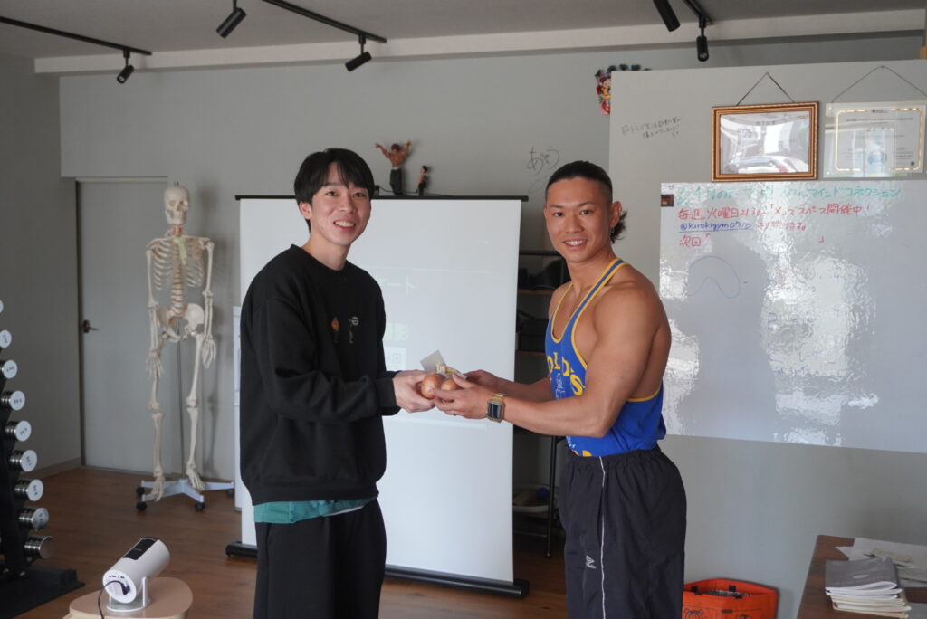 セミナーの最後には筋肉の成長には欠かせないたんぱく質『卵』のプレゼントも。